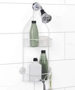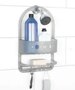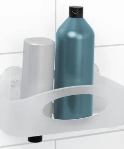 - Safety railing with molded-in soap dish and shampoo holder