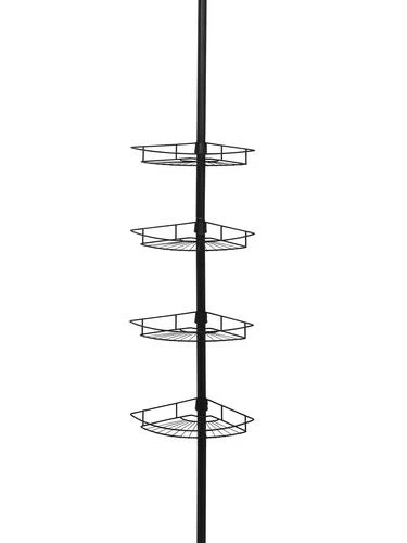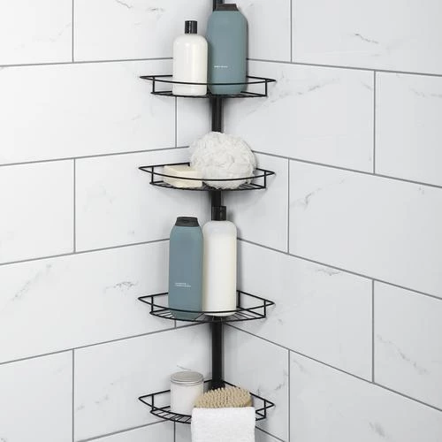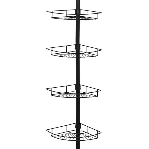 The easy-to-assemble, install and adjust Zenna Home Shower Tension Pole Caddy adds valuable storage inside your bath or shower. The pole caddy’s four storage baskets with built-in towel bars are adjustable up and down to fit taller items and maximize storage. The wire baskets are quick draining to allow your items to dry faster after your shower. The shower caddy’s innovative tension mechanism makes it easy to securely install the caddy in most standard bath spaces from 60 to 97 inches high. There are no tools needed for assembly and no cutting necessary. The rust-resistant caddy features an attractive matte black finish and is easy to keep clean by wiping with a damp cloth.