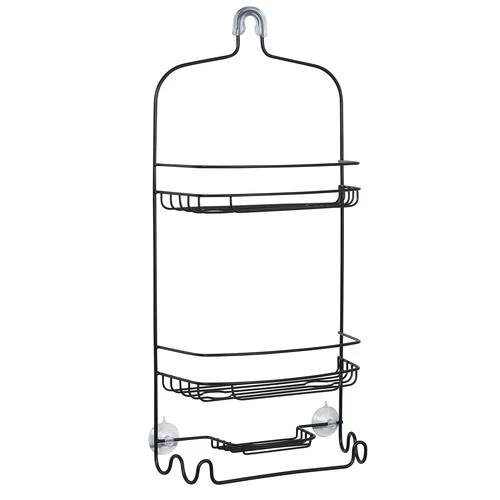 Bring better storage and organization into your bath and shower with the Zenna Home Shower Caddy. This over-the-showerhead caddy combines style and function by providing two basket shelves, a soap dish, razor storage and a towel bar. The shower organizer’s wire frame is quick draining so your bath items dry faster after your shower. There are no tools needed for installation; the shower caddy features a non-slip collar that fits snug over your showerhead and built-in suction cups for additional stability. The caddy complements many bathroom decor styles with its rust-resistant matte black finish.